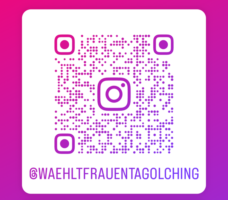 Zusätzlich wurde ein gemeinsamer Instagram-Account eingerichtet: @waehltfrauentagolching will über die Kandidatinnen und Aktionen zum Weltfrauentag informieren und zum Wählen animieren. Das Instagram-Profil ist über einen QR Code auf dem Plakat erreichbar.