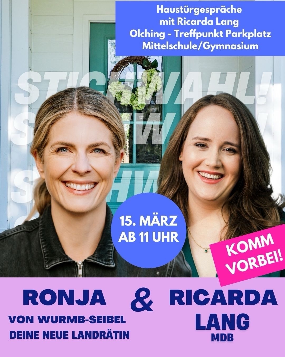 Am Sonntag, den 15.03., sind Ronja von Wurmb-Seibel gemeinsam mit Ricarda Lang in Olching für Haustürgespräche unterwegs.